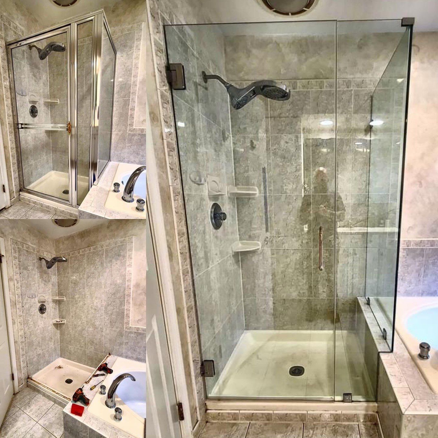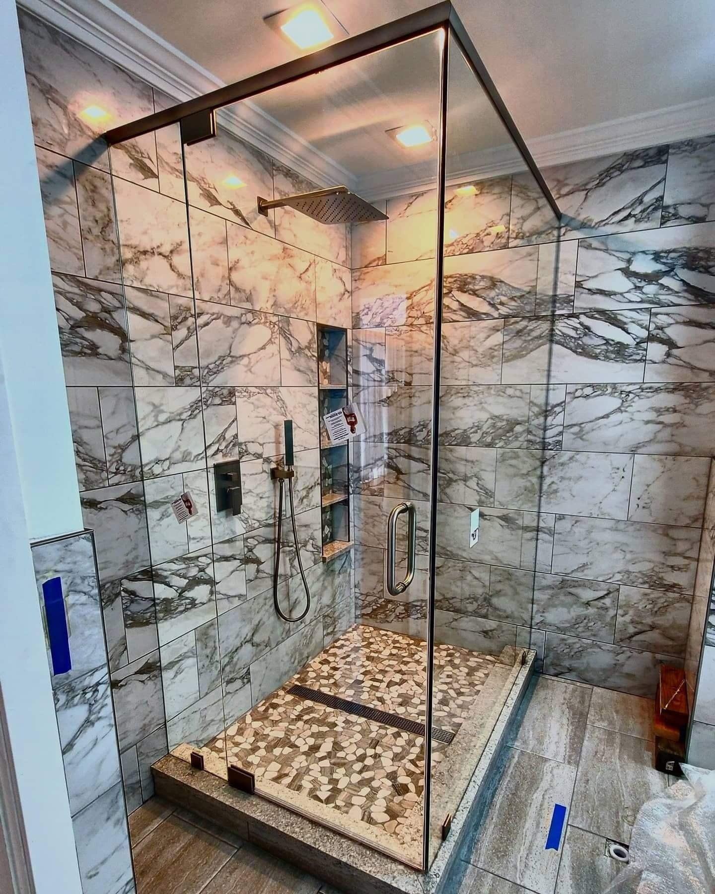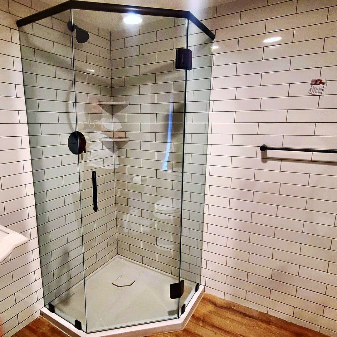 We provide hardware to match your existing fixtures, and install glass shower doors with custom glass notches to fit around your tile. We are also a registered Shower Guard retailer, which protects your glass from staining.